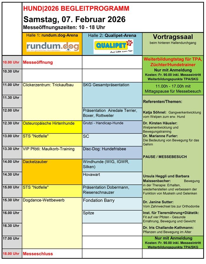 Ganztagesseminar für TPA, Züchter, Hundetrainer mit Bildungspunkten (TPA/SKG) und Gelegenheit für Messebesuch